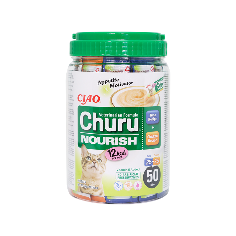 Churu Vet kreminis skanėstas katėms, padedantis sužadinti apetitą, sumažinti nerimą, sušerti vaistus ar augintiniui atsigauti po ligos. Skanėsto sudėtyje gausu maistinių medžiagų, todėl tinka katėms, kurioms reikia atstatyti mitybą ir kūno svorį.