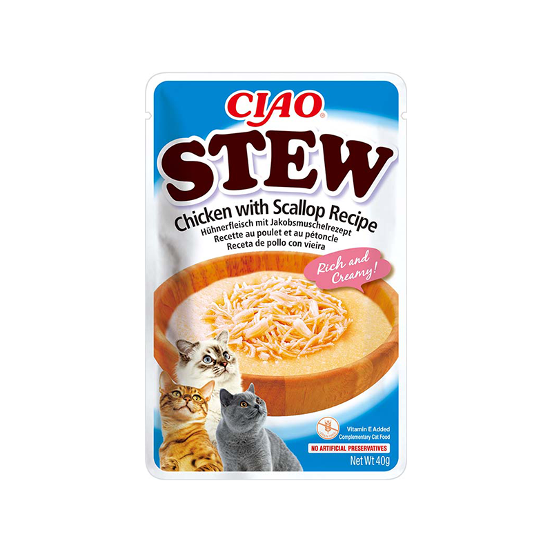 Ciao Stew – vištienos ir šukučių mėsos troškinys skanėstas katėms.