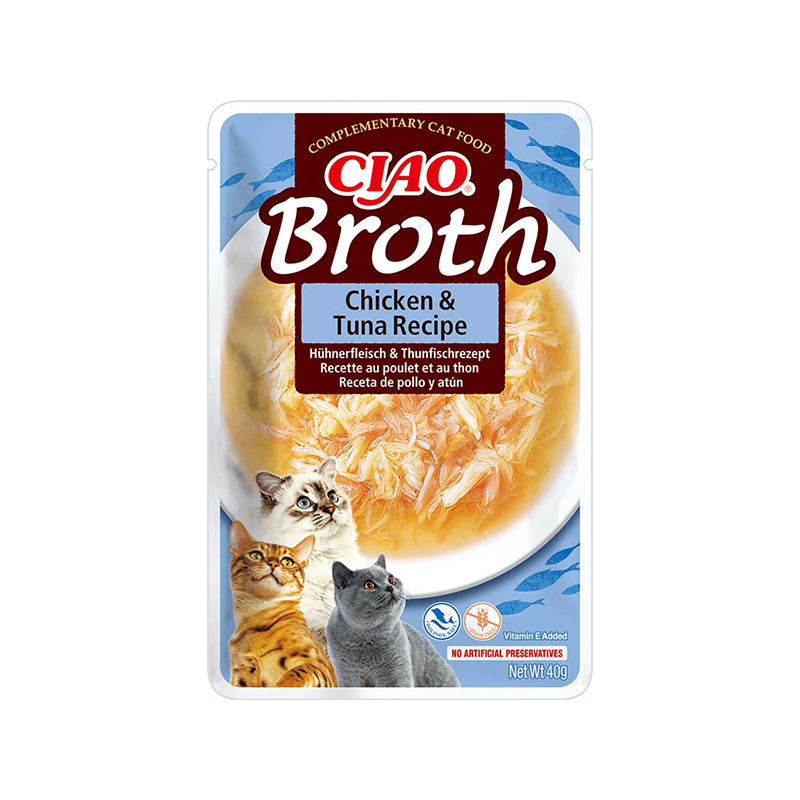 Ciao Broth Chicken and Tuna – vištienos ir tuno sultinys skanėstas katėms.