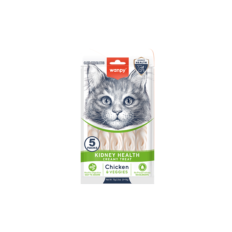 Wanpy kreminiai vištienos ir daržovių skanėstai katėms, padedantys palaikyti sveiką inkstų veiklą. Skanus ir vitaminų gausus užkandis Jūsų augintiniui!