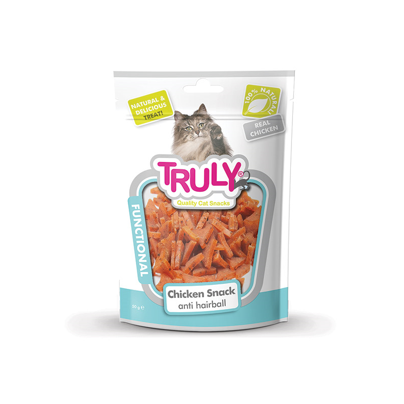 Truly Anti Hairball Chicken Snacks – skanukai katėms su vištiena.