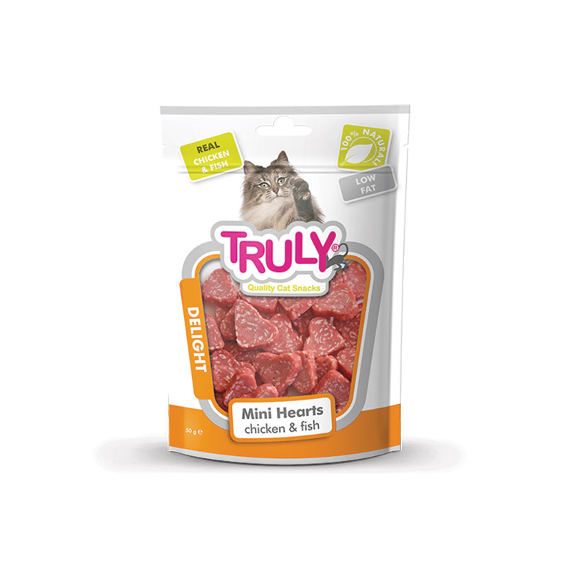 Truly Mini Hearts Chicken & Fish – skanukai katėms su vištiena ir žuvimi.