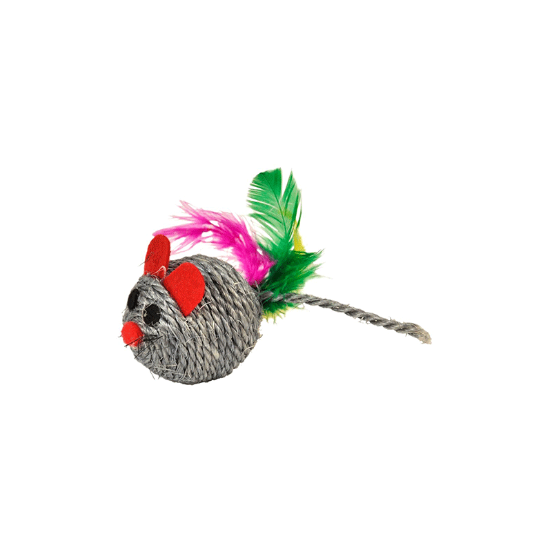 Happet Sisal Mouse & Feather – pelė katėms su plunksnomis, sužadinanti norą medžioti ir žaisti.