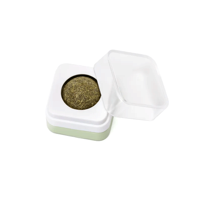 Nobleza katžolės kamuoliukas katėms su dėžute, kurią galima pritvirtinti bet kurioje patogioje vietoje! Kamuoliukas padeda išvalyti katės dantis nuo apnašų ir skatina aktyviai žaisti.