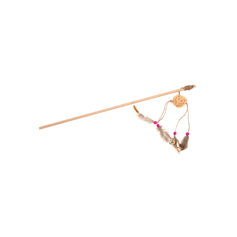 Ecomfy GAIA lazdelė su ratano kamuoliuku ir plunksnomis žaislas katėms