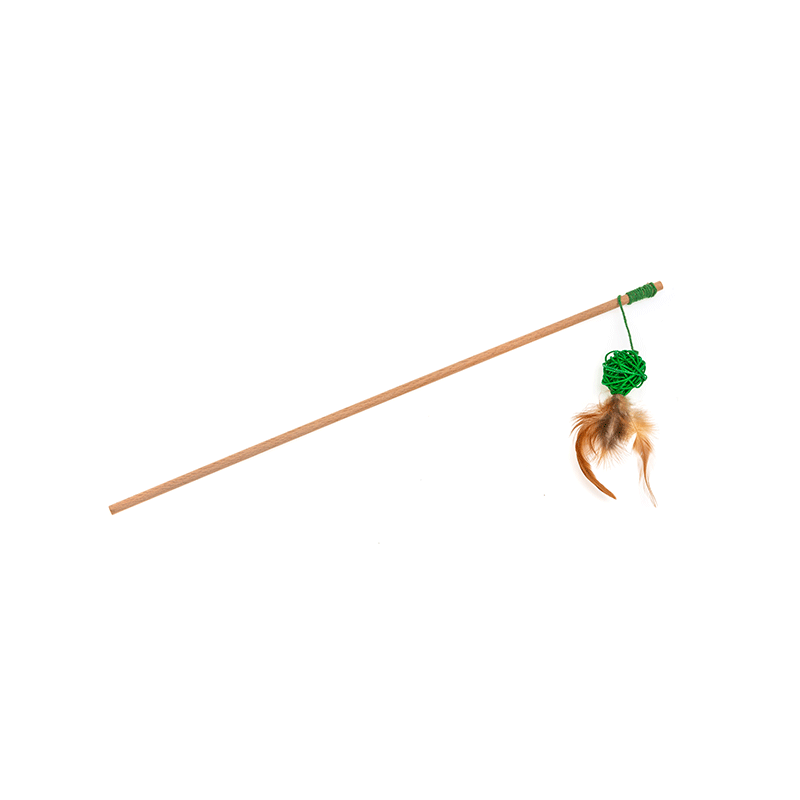 Ecomfy žaislas katėms – plunksnos ir ratano kamuoliukas ant pagalio. Rankų darbo žaislas, pagamintas iš visiškai natūralių bei gyvūnams saugių medžiagų!
