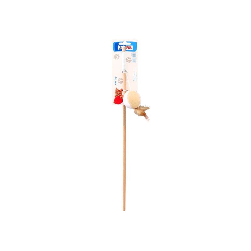 Happet Fishing Rod – žaislas katėms ant pagalio su kamuoliuku ir plunksnomis, skatinantis katę medžioti ir žaisti.