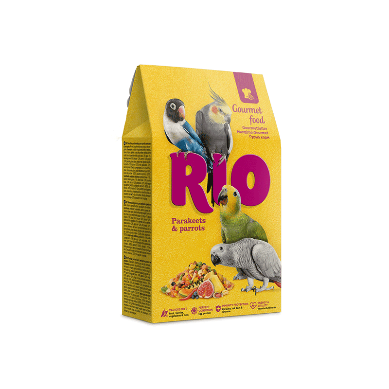 RIO Gourmet food for parakeets and parrots – maistas papūgoms ir ilgauodegėms papūgėlėms.