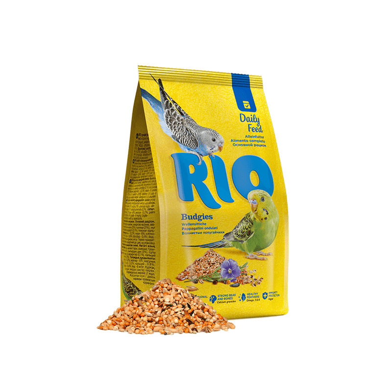 RIO maistas banguotosioms papūgoms iš įvairių sėklų ir grūdų, aprūpinančių papūgėles visomis reikalingomis maistinėmis medžiagomis.
