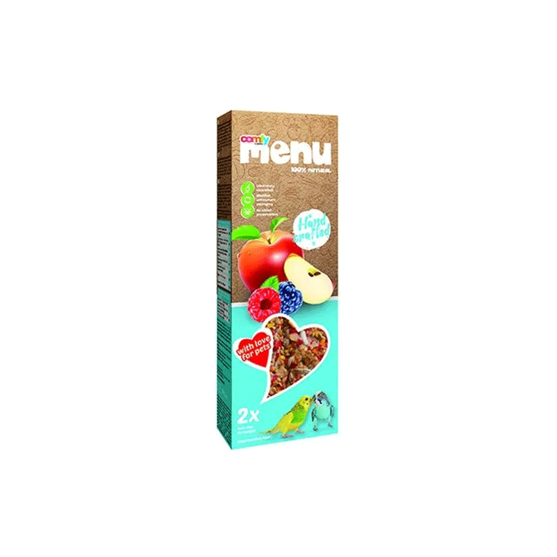 Comfy Menu natūralus skanėstas papūgoms iš įvairių grūdų, sėklų ir vaisių, gausus būtiniausių vitaminų ir maistinių medžiagų.