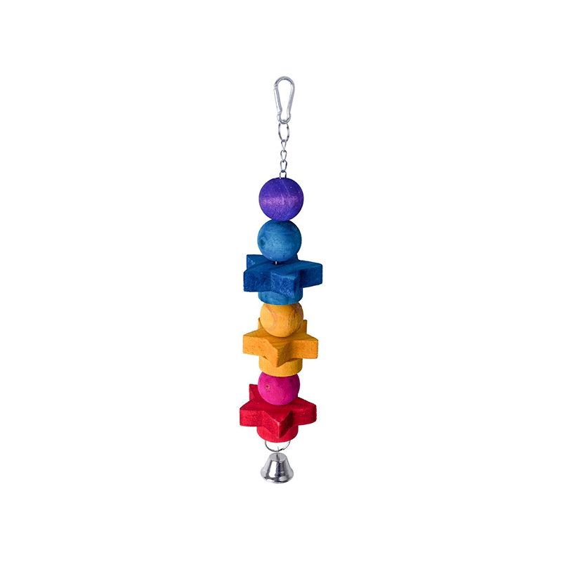 Happet žaislai papūgoms ir kitiems paukščiams, laikomiems narvelyje. Spalvingos kaladėlės ir karoliukai su varpeliu, dar labiau sužadinančiu paukščių smalsumą.