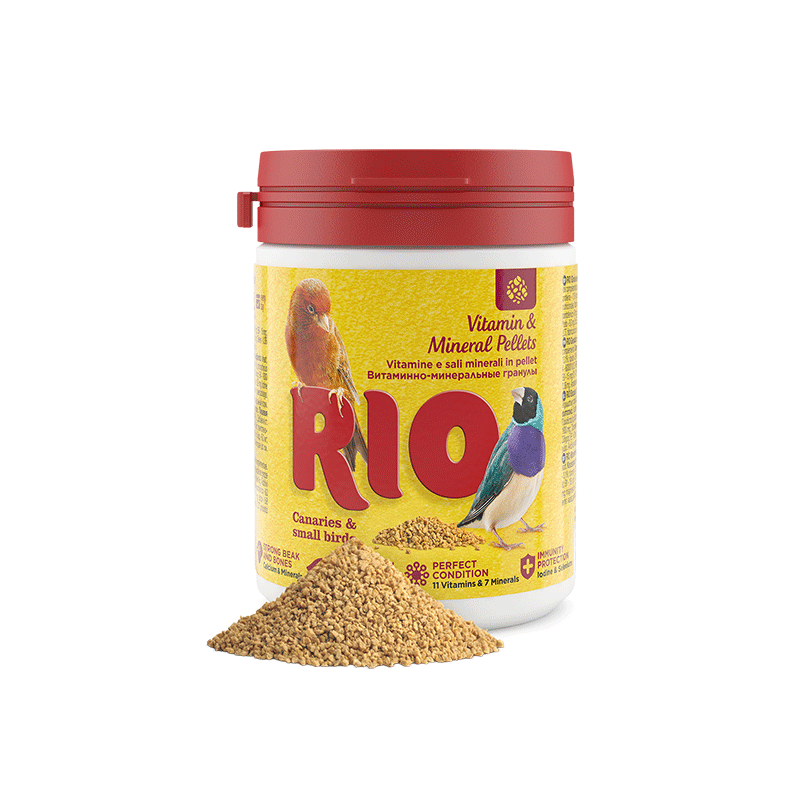 RIO vitaminai ir mineralai kanarėlėms, egzotiniams ir kitiems mažiems paukščiams, palaikantys imuninę sistemą, stiprinantys regėjimą, gerinantys odos ir plunksnų būklę.