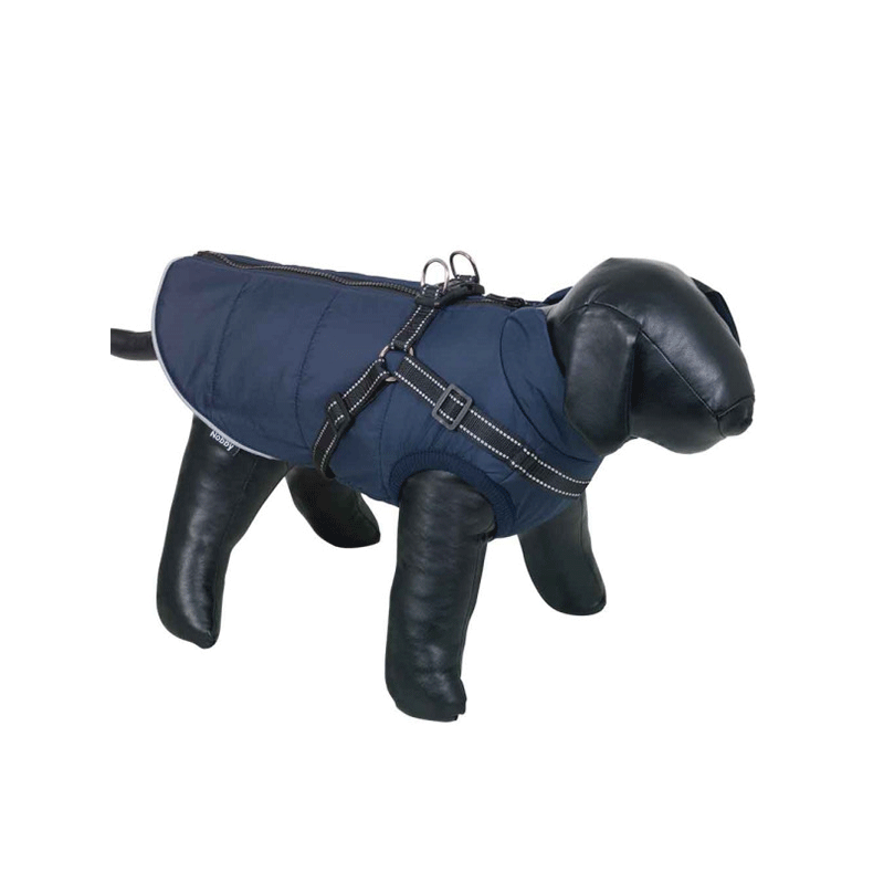 Nobby tamsiai mėlyna šunų striukė, puikiai tinkanti pasivaikščiojimams šaltuoju metų laiku.