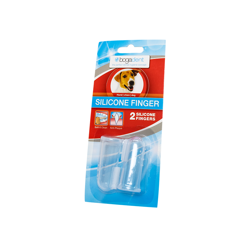 Naudojimas: kuo anksčiau švelniai ir žaismingai pratinkite šunį prie burnos higienos. Užmaukite antpirštį ant drėgno rodomojo piršto. Išspauskite Bogadent Dental Creme dantų pastos arba Bogadent Dental Lipo-gel dantų gelio ir valykite dantų išorę ir vidų maždaug tris minutes, švelniai paspausdami. Pagirkite šunį, kol valote dantis, po to atsilyginkite skanėstu. Po naudojimo išplaukite silikoninį antpirštį su vandeniu. Jei naudojate kasdien, keiskite kas 3–4 mėnesius.