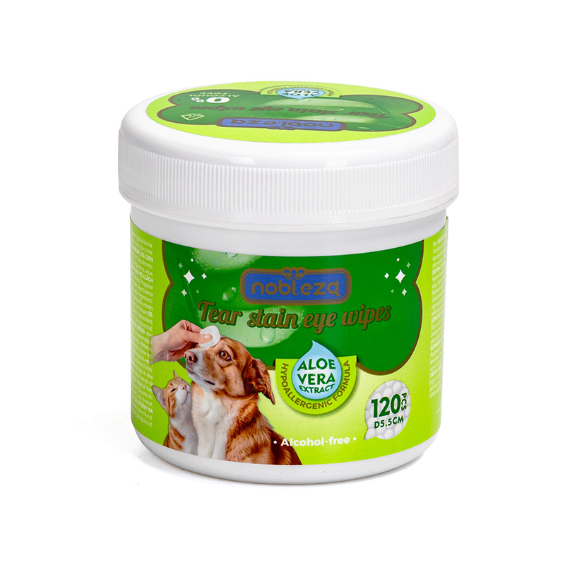 Nobleza servetėlės su alaviju akims valyti šunims ir katėms, efektyviai šalinančios ašarų dėmes.