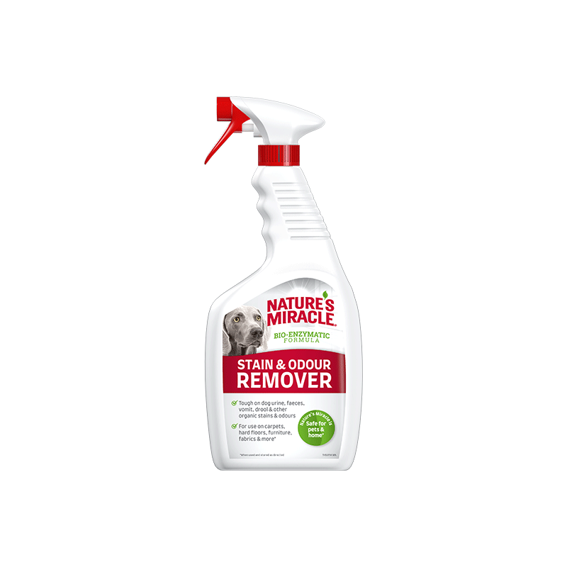 Nature's Miracle valymo priemonė, efektyviai šalinanti šlapimo, išmatų ir kitas šunų paliktas dėmes bei kvapus.