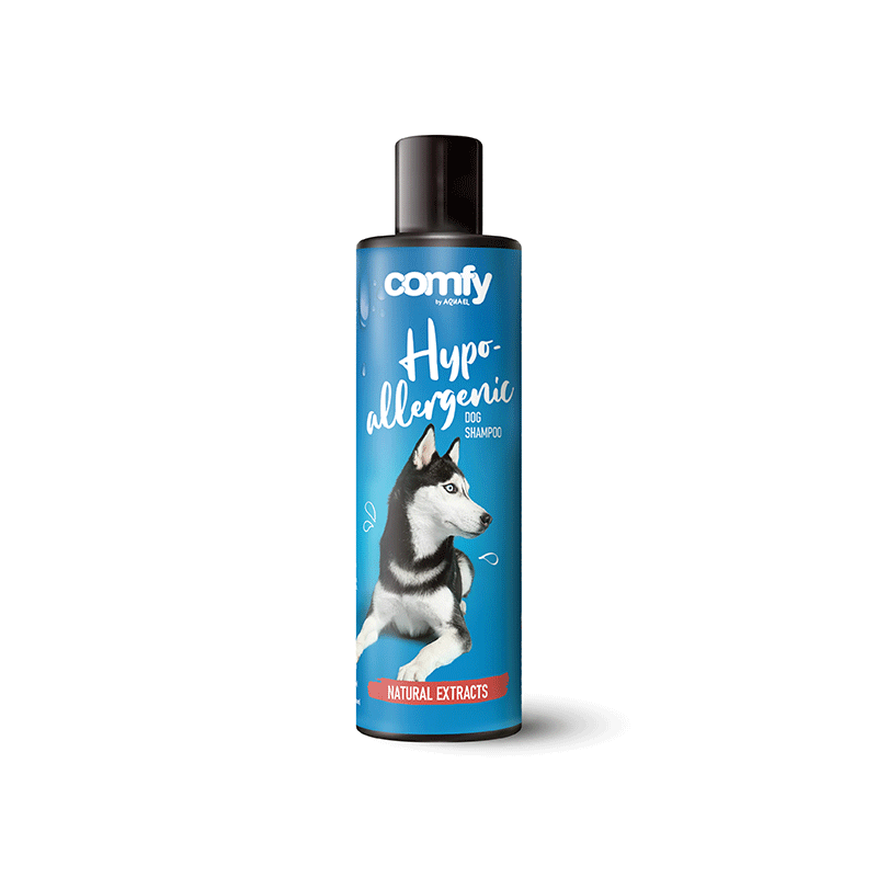 Comfy hipoalerginis šunų šampūnas, tinkantis jautrią, sudirgusią odą turintiems šunims. Šampūnas su alavijų ekstraktu, kuris skatina pažeistos odos gijimą ir malšina niežulį.