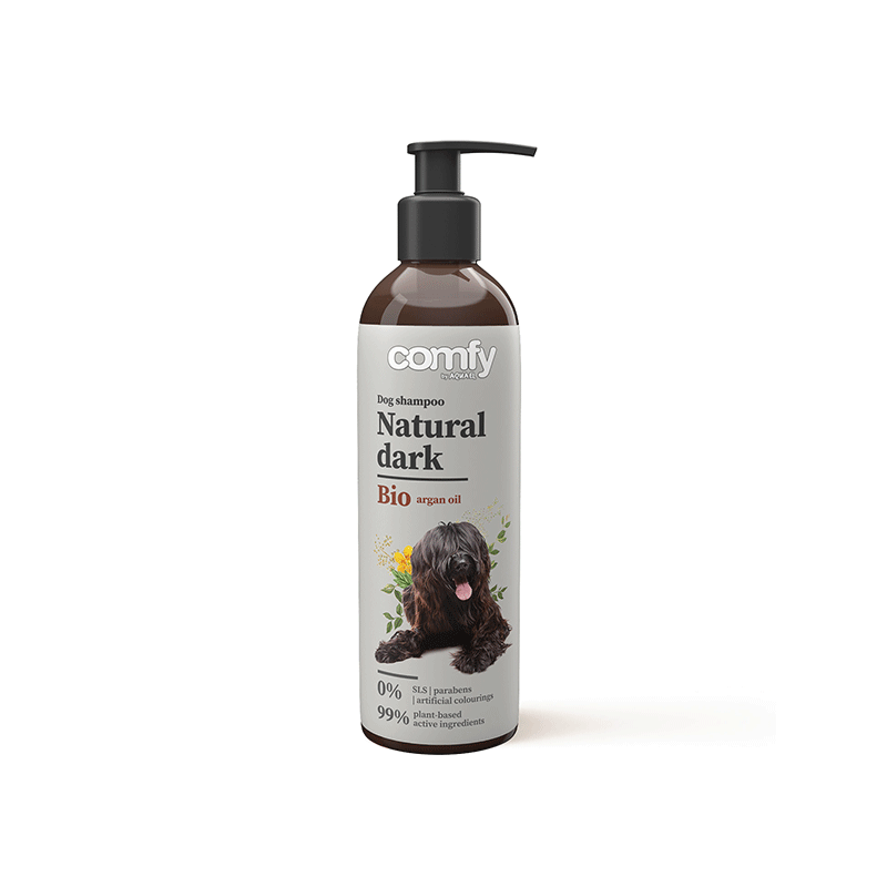 Comfy Natural Dark, 250 ml – šunų šampūnas, sudarytas iš 5 natūralių ekstraktų.