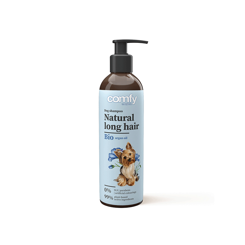 Comfy Natural Long Hair, 250 ml – šunų šampūnas, sudarytas iš 5 natūralių ekstraktų.