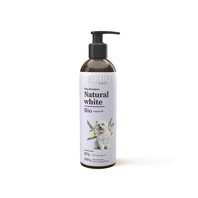 Comfy Natural White, 250 ml – šunų šampūnas, sudarytas iš 5 natūralių ekstraktų.