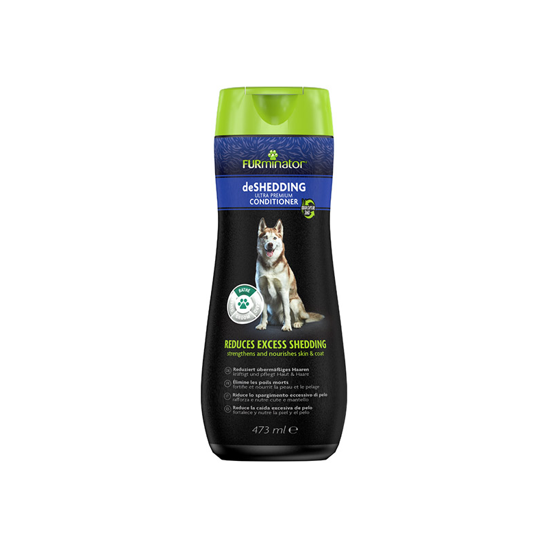 FURminator kondicionierius šunims, efektyviai drėkinantis odą ir sumažinantis perteklinį plaukų slinkimą. Be parabenų ir cheminių dažiklių, padedantis palaikyti sveiką odą ir kailį.