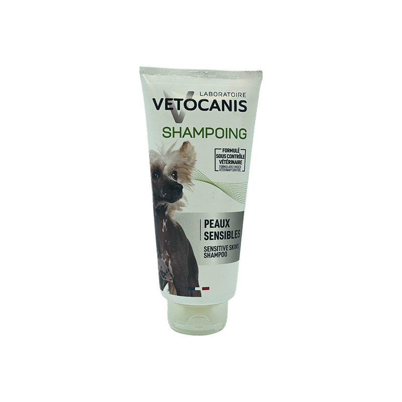 Vetocanis hipoalerginis šampūnas šunims su augaliniu glicerinu ir simondsijų aliejumi, skirtas jautriai odai.