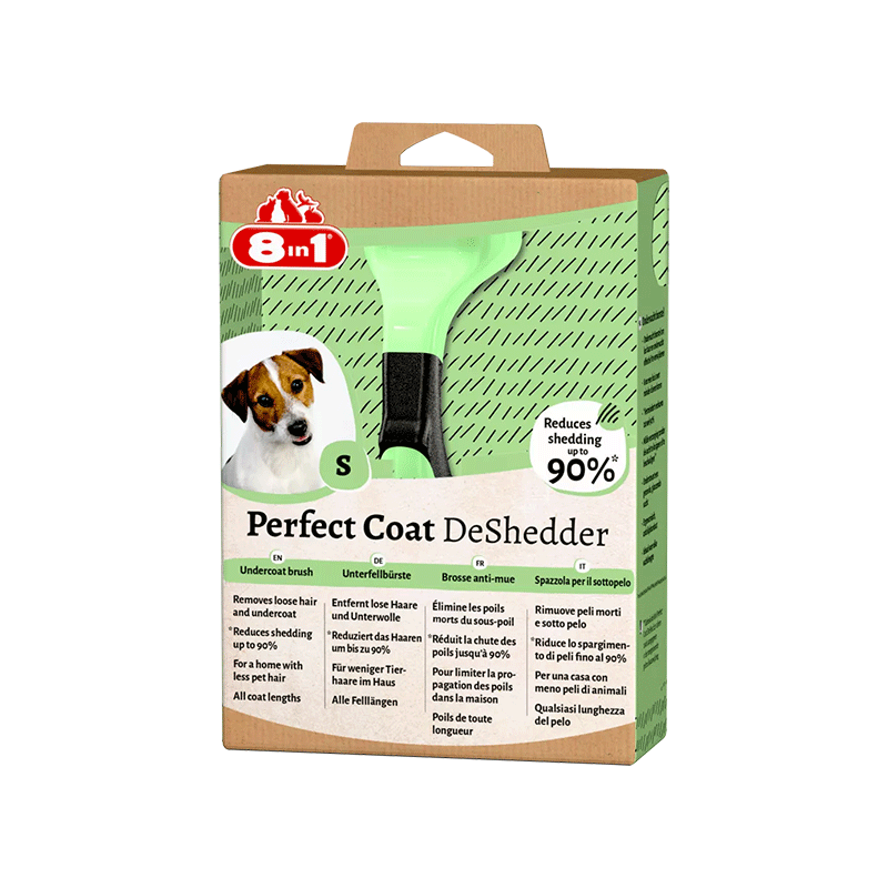 8in1 Perfect Coat DeShedder undercoat brush for small dogs – šukos šunims, padedančios palaikyti sveiką ir blizgantį augintinio kailį.