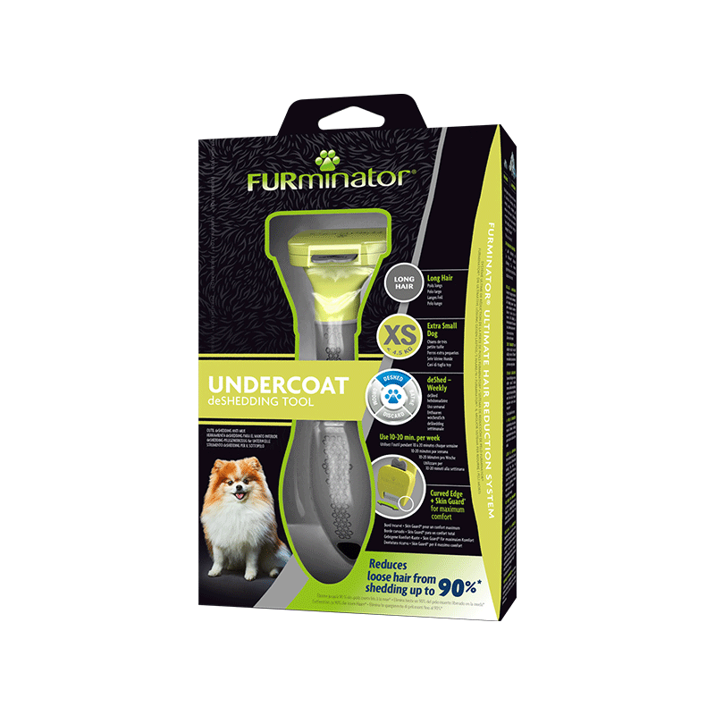 FURminator deShedding Tool for long haired Extra small dogs – specialios pešiojamosios šukos nykštukinių veislių, ilgaplaukių šunų kailiui prižiūrėti.
