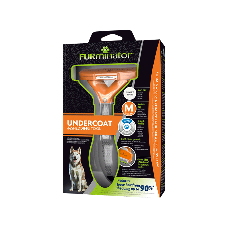FURminator šukos, skirtos vidutinio dydžio veislių, trumpaplaukių šunų kailiui prižiūrėti. Pešiojamosios šukos šunims, palengvinančios kasdienę kailio priežiūrą.