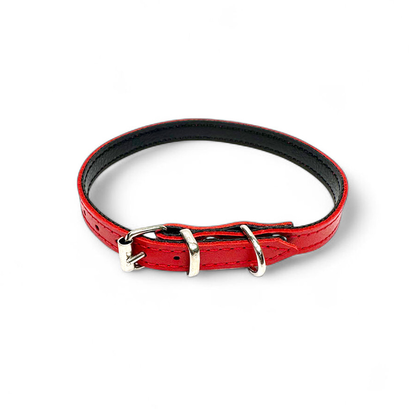 Fleksas raudonas, odinis antkaklis mažų veislių šunims, 25 cm