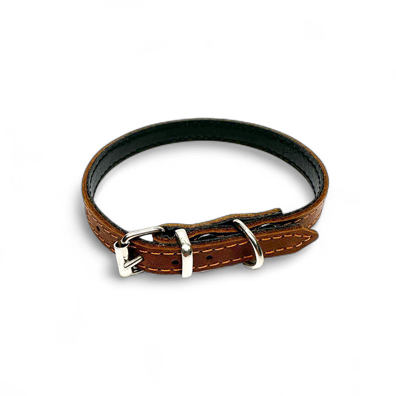 Fleksas rudas, odinis antkaklis mažų veislių šunims, 30 cm