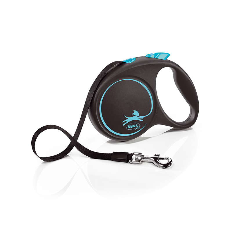 Flexi Black Design Tape – juostinis, mėlynas pavadėlis šuniui.