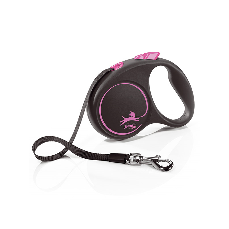 Flexi Black Design Tape – juostinis, rožinis pavadėlis šuniui.