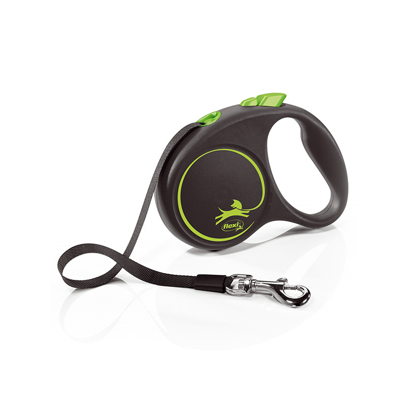 Flexi Black Design juostinis, žalias pavadėlis šunims, S, 5 m