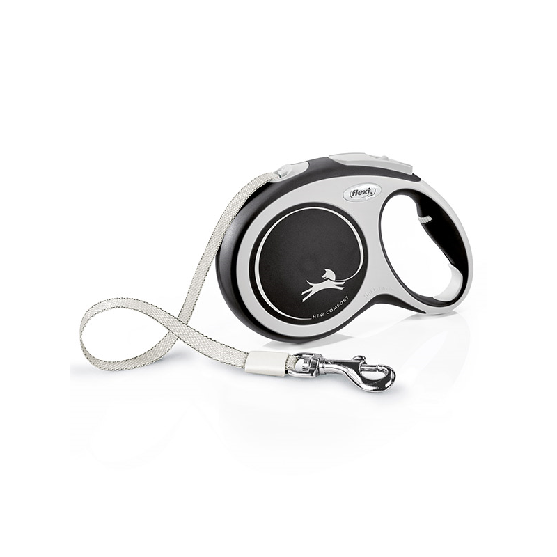 Flexi New Comfort Tape – juostinis, juodas pavadėlis šuniui.