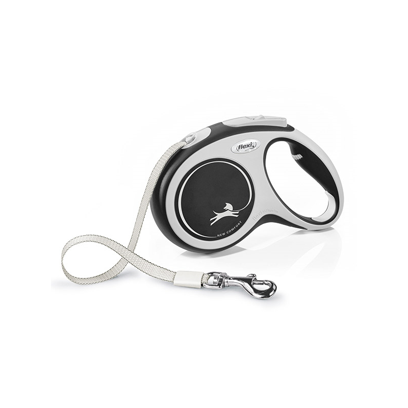 Flexi New Comfort Tape – juostinis, juodas pavadėlis šuniui.