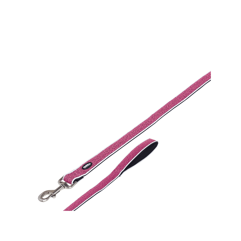 Nobby pavadėlis šunims iš patvaraus nailono, su šviesą atspindinčiomis juostelėmis ir matinio sidabro detalėmis.