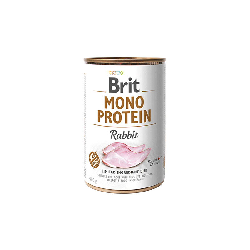 Brit Care Mono Protein Rabbit – šunų konservai su vienos rūšies baltymais, užtikrinantys visavertę ir subalansuotą šuns mitybą.