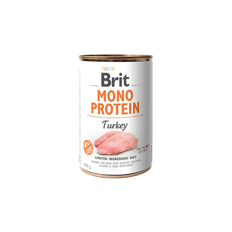 Brit Care Mono Protein Turkey – šunų konservai su vienos rūšies baltymais, užtikrinantys visavertę ir subalansuotą šuns mitybą.