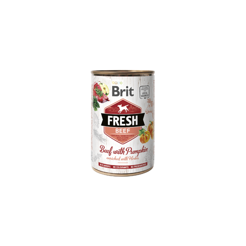 Brit Fresh Beef & Pumpkin – šunų konservai su jautiena ir moliūgais, gausūs vertingų maistinių medžiagų.
