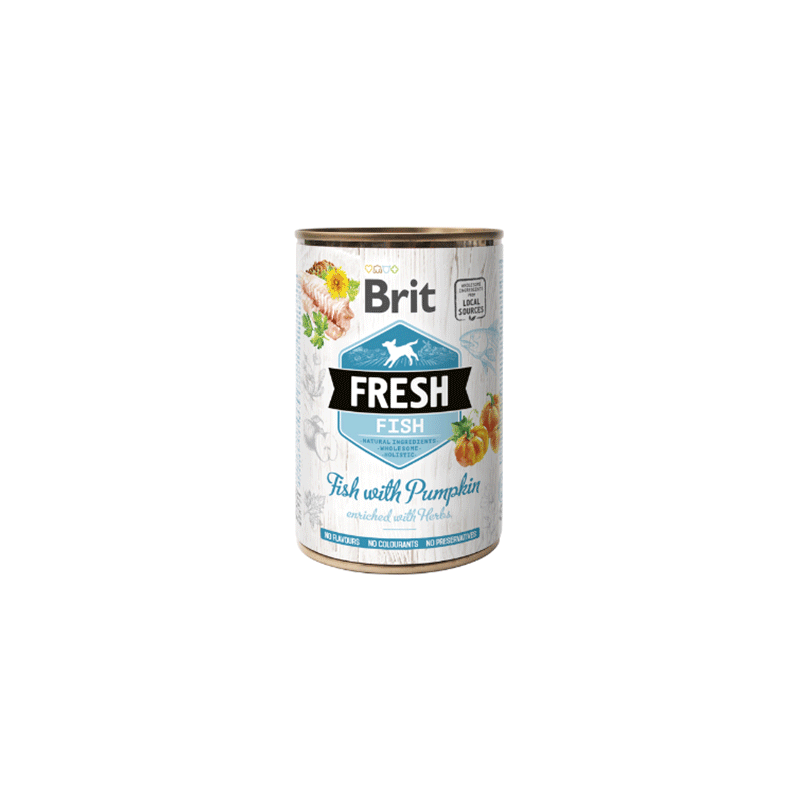 Brit Fresh Fish & Pumpkin – šunų konservai su žuvimi ir moliūgais, gausūs vertingų maistinių medžiagų.