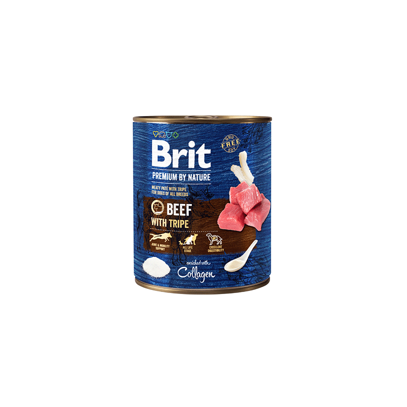 Brit Premium by Nature Beef with Tripes – šunų konservai su jautiena ir žarnokais, gausūs vertingų maistinių medžiagų, vitaminų ir mineralų.