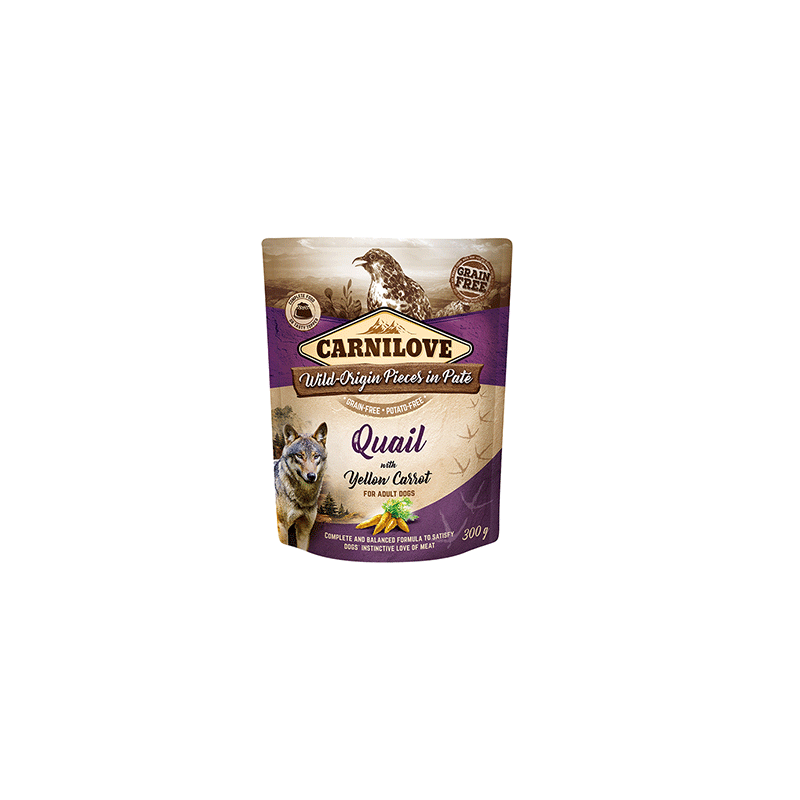 Carnilove Pate Quail with Yellow Carrot – konservai šunims be grūdų, su ypač dideliu kiekiu mėsos ir geltonosiomis morkomis.
