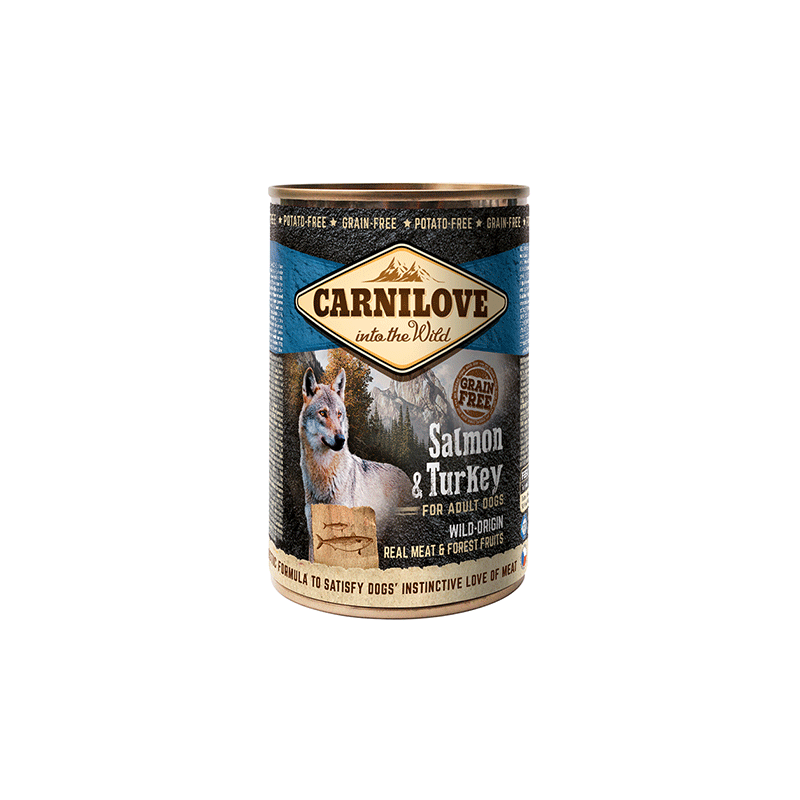 Carnilove Wild Meat Salmon & Turkey – konservai šunims su lašiša ir kalakutiena, gausūs vertingų maistinių medžiagų, mikroelementų ir vitaminų.