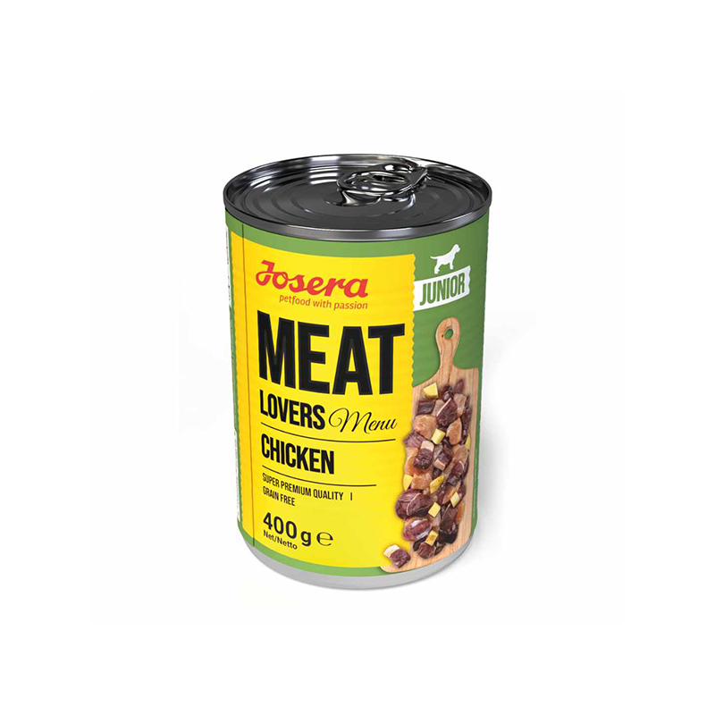 Josera Meat Lovers Junior Pure Chicken – super premium klasės konservai su vištiena, antiena ir bulvėmis.