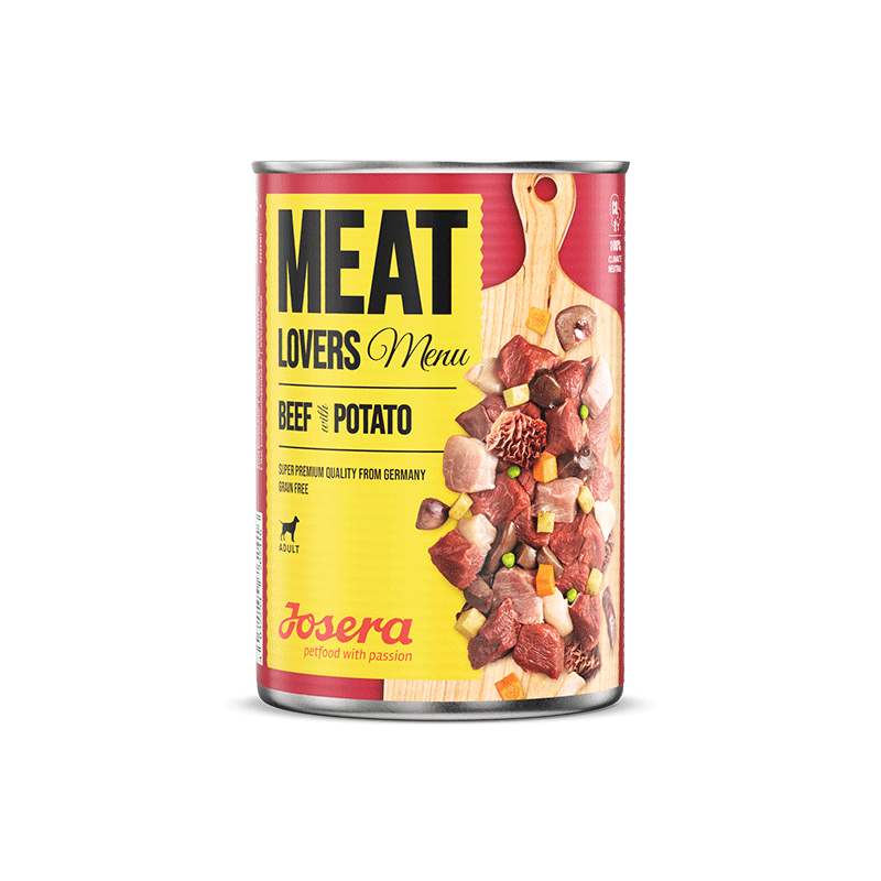 Josera Meat Lovers konservai šunims su jautiena ir bulvėmis. Gardus ir maistingas šlapias maistas suaugusiems šunims be grūdų, gausus mėsos, sultinio ir mineralinių medžiagų.