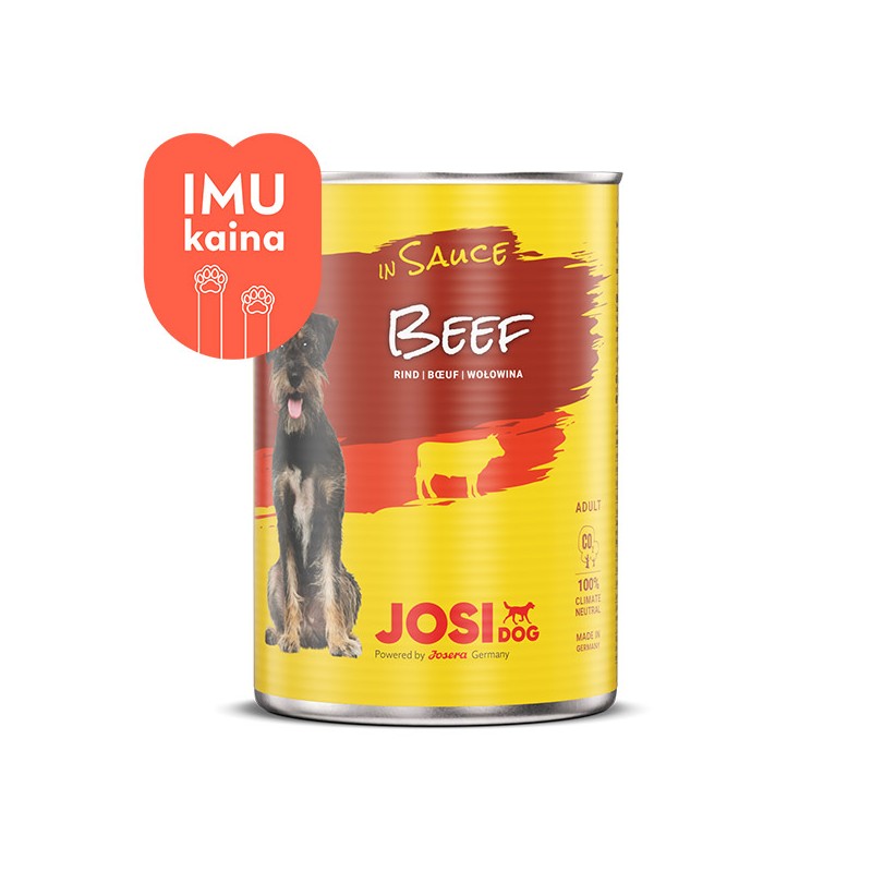 JosiDog konservai šunims su jautiena padaže, papildyti kaulus stiprinančiais vitaminais ir be dirbtinių priedų.