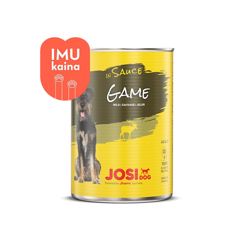 JosiDog Game in Sauce – konservai šunims su žvėriena padaže, be dirbtinių priedų ir gausus vertingų vitaminų.