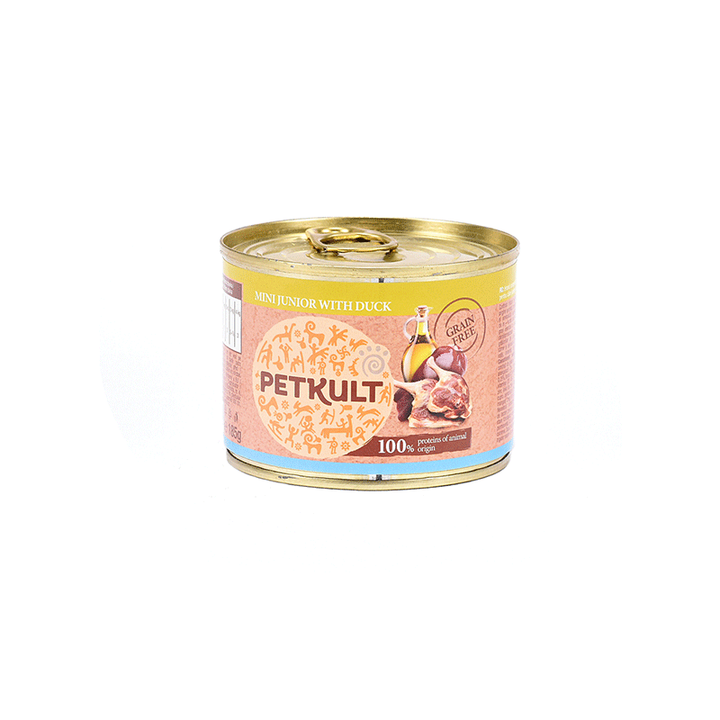Petkult maistas mažų veislių šuniukams su antiena, gausus vitaminų, mineralų ir svarbių aminorūgščių. Lengvai virškinami šunų konservai be kviečių, sojų ir dirbtinių priedų.