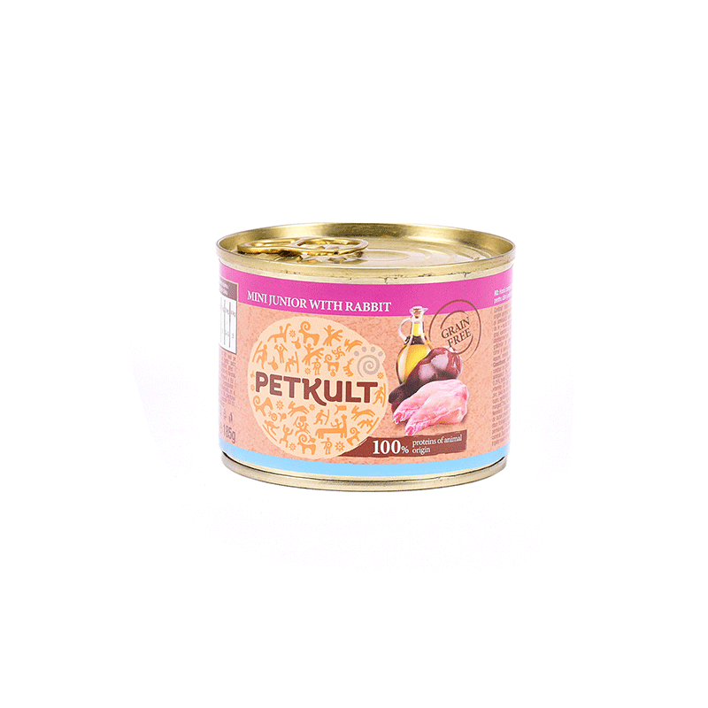 Petkult maistas mažų veislių šuniukams su triušiena, gausus vitaminų, mineralų ir svarbių aminorūgščių. Lengvai virškinami šunų konservai be kviečių, sojų ir dirbtinių priedų.